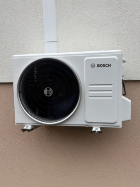 Les calories de l’air extérieur sont récupérées, grâce à une unité extérieure, fixée sur la façade. Elle les transforme en air chaud ou froid qu’elle diffuse à l’intérieur via une seconde unité, fixée elle sur le mur.